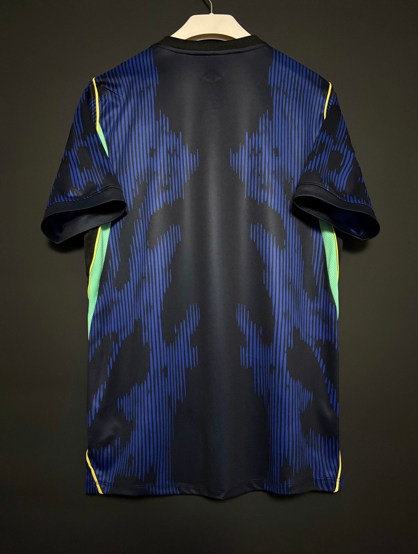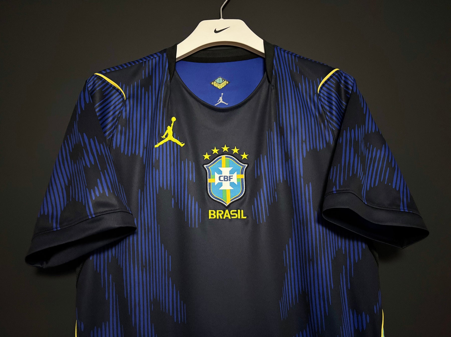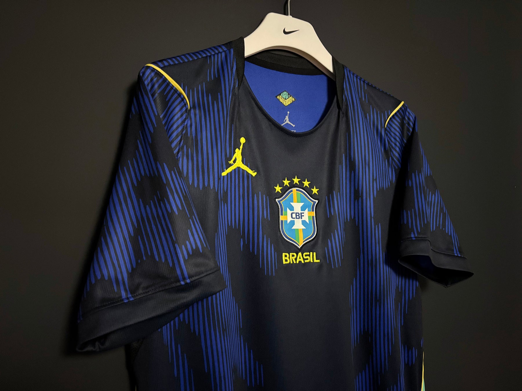 Tämä Brasilian kolmas pelipaita on rohkea ja moderni valinta faneille, jotka haluavat jotain ainutlaatuista. Valmistettu kevyestä ja hengittävästä teknisestä materiaalista, joka tarjoaa korkean mukavuuden niin ottelupäivinä kuin arjessakin. Tumma musta pohjaväri yhdistettynä sinisiin kuvioihin ja vihreisiin yksityiskohtiin sekä Brasilian viralliseen tunnukseen luo voimakkaan ja urheilullisen ilmeen, joka on inspiroitu joukkueen energiasta ja tyylistä. Täydellinen valinta katsomoon, kentälle tai trendikkääksi streetwear-tyyliksi.