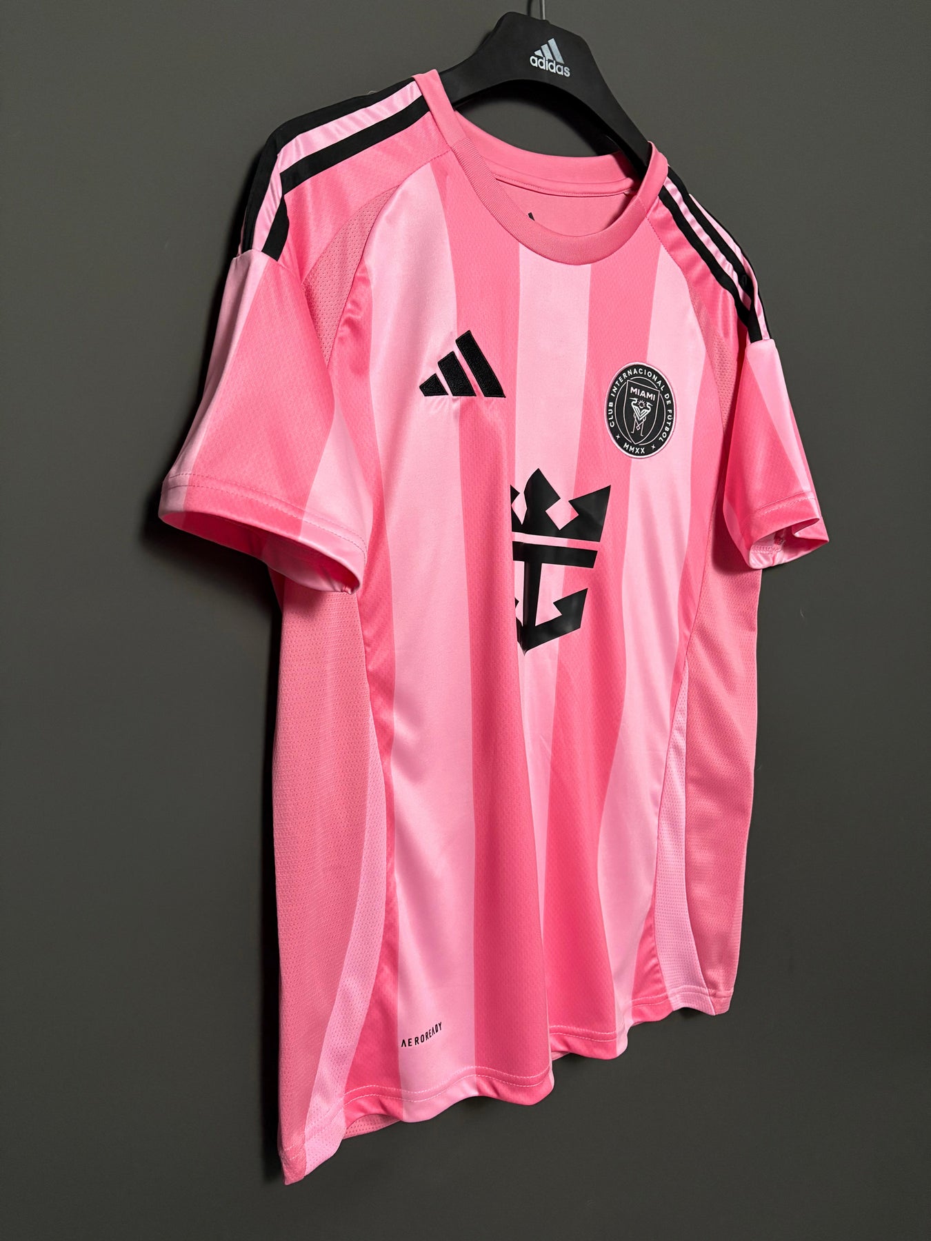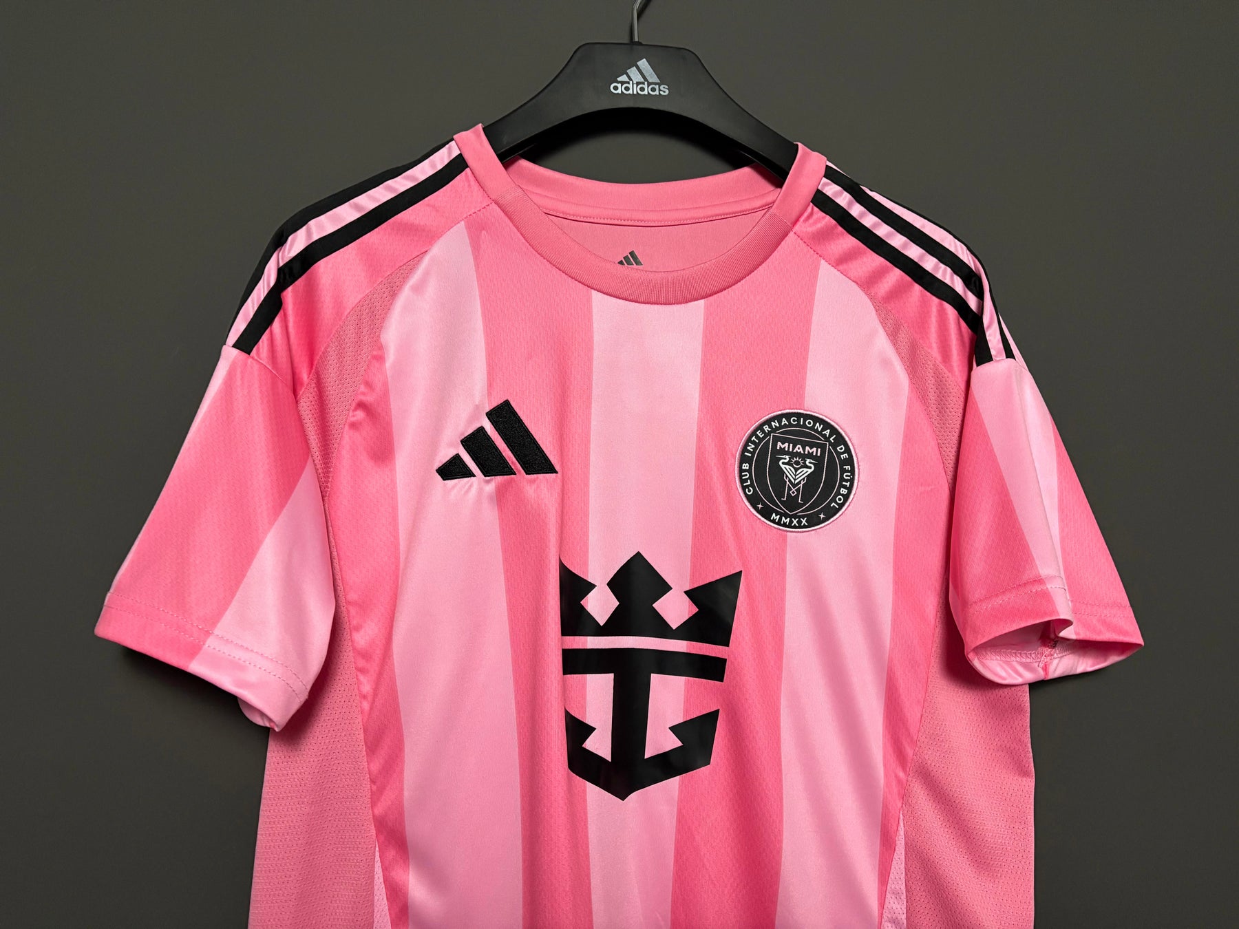 Inter Miamin kotipelipaidassa on näyttävä pinkki design, jota täydentävät pystysuuntaiset raidat luoden modernin ja energisen ilmeen. Mustat yksityiskohdat ja seuran logo muodostavat voimakkaan kontrastin ja korostavat paidan tyylikästä ulkoasua. Paita on valmistettu kevyestä ja hengittävästä materiaalista, joka tarjoaa erinomaisen käyttömukavuuden niin kentällä kuin arjessakin.