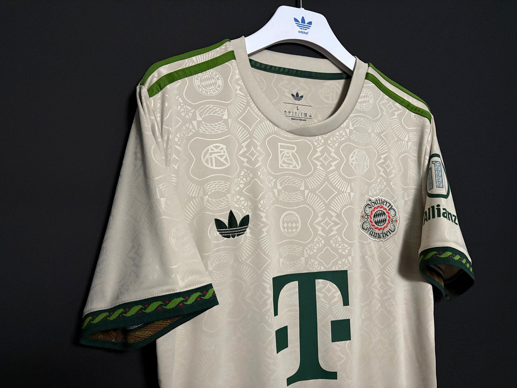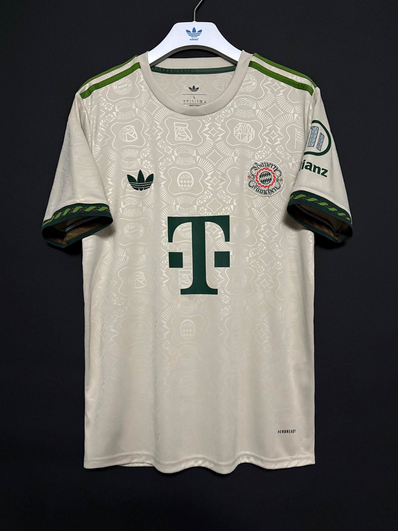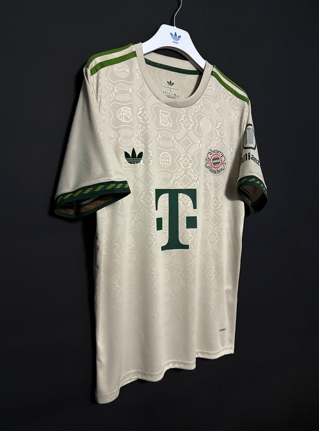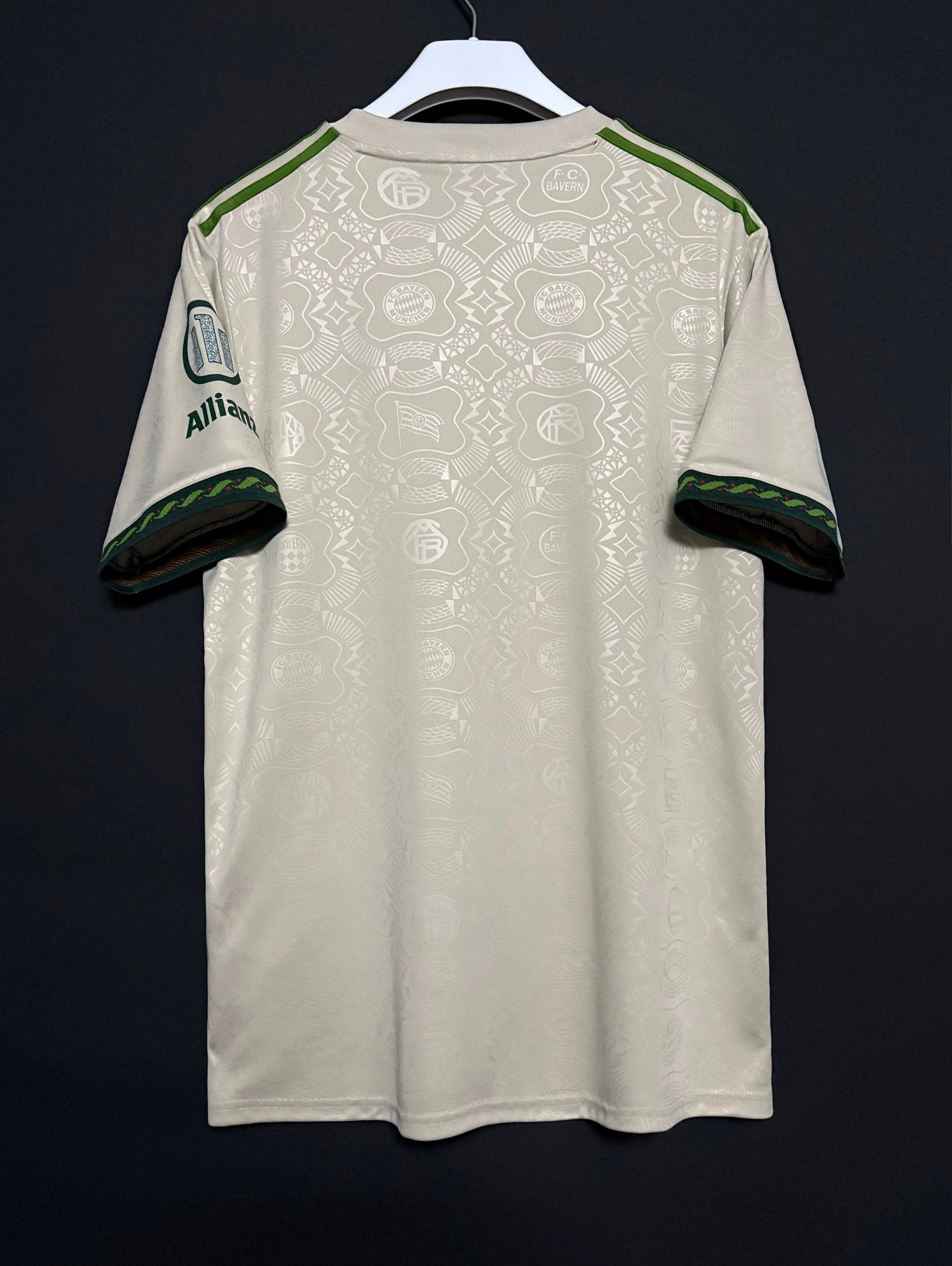 FC Bayern Münchenin virallinen Wiesn-paita kaudelle 2025/2026 on tyylikäs vaaleasävyinen design, joka on saanut inspiraationsa perinteisestä Oktoberfest-tyylistä. Olkapäiden ja hihojen vihreät yksityiskohdat luovat klassisen kontrastin, kun taas koko paidan kattava hienovarainen kuviointi antaa sille ainutlaatuisen ja juhlavan ilmeen. Paita on valmistettu kevyestä ja hengittävästä materiaalista, joka tarjoaa erinomaisen käyttömukavuuden niin kentällä kuin arjessakin.