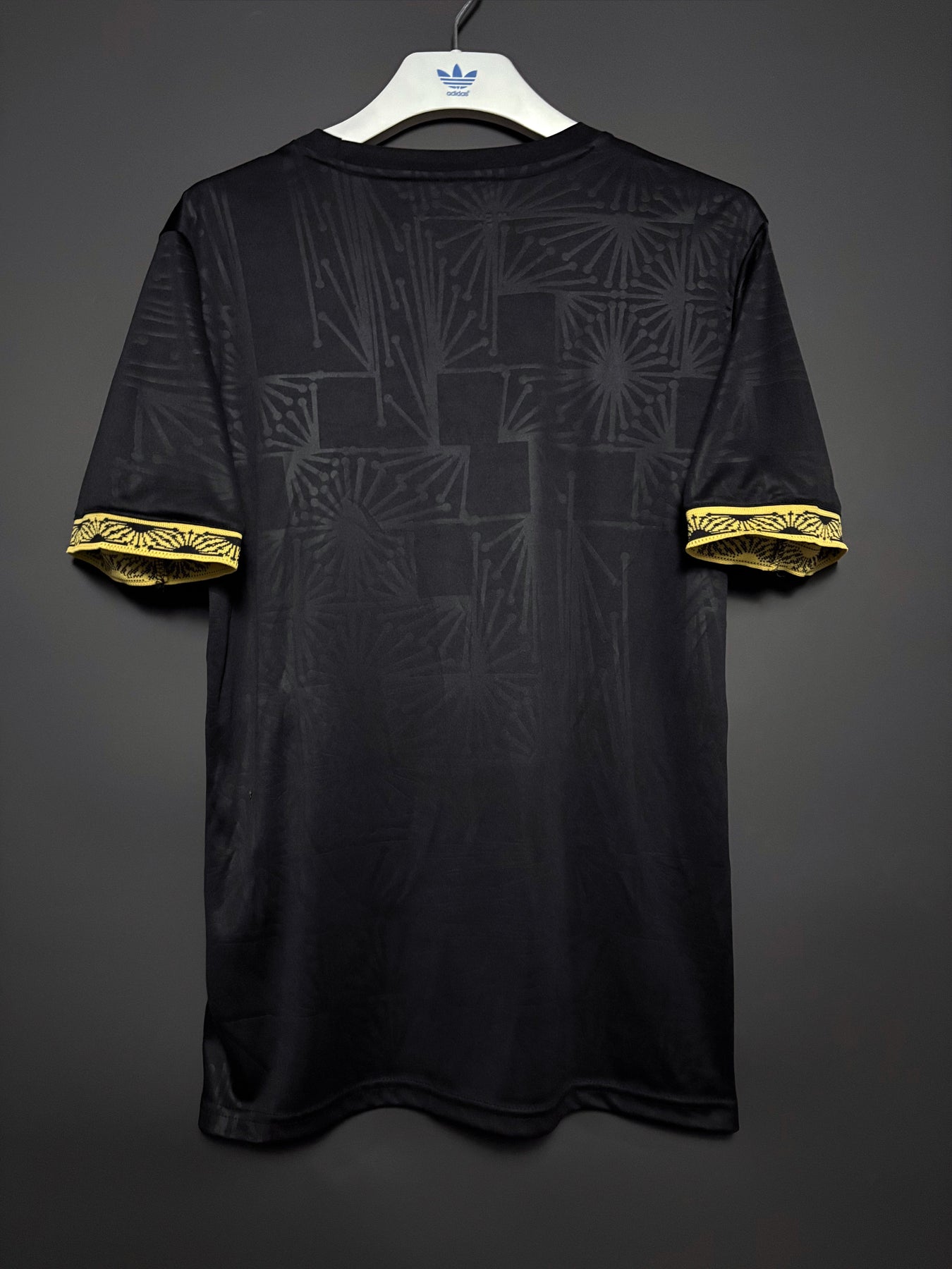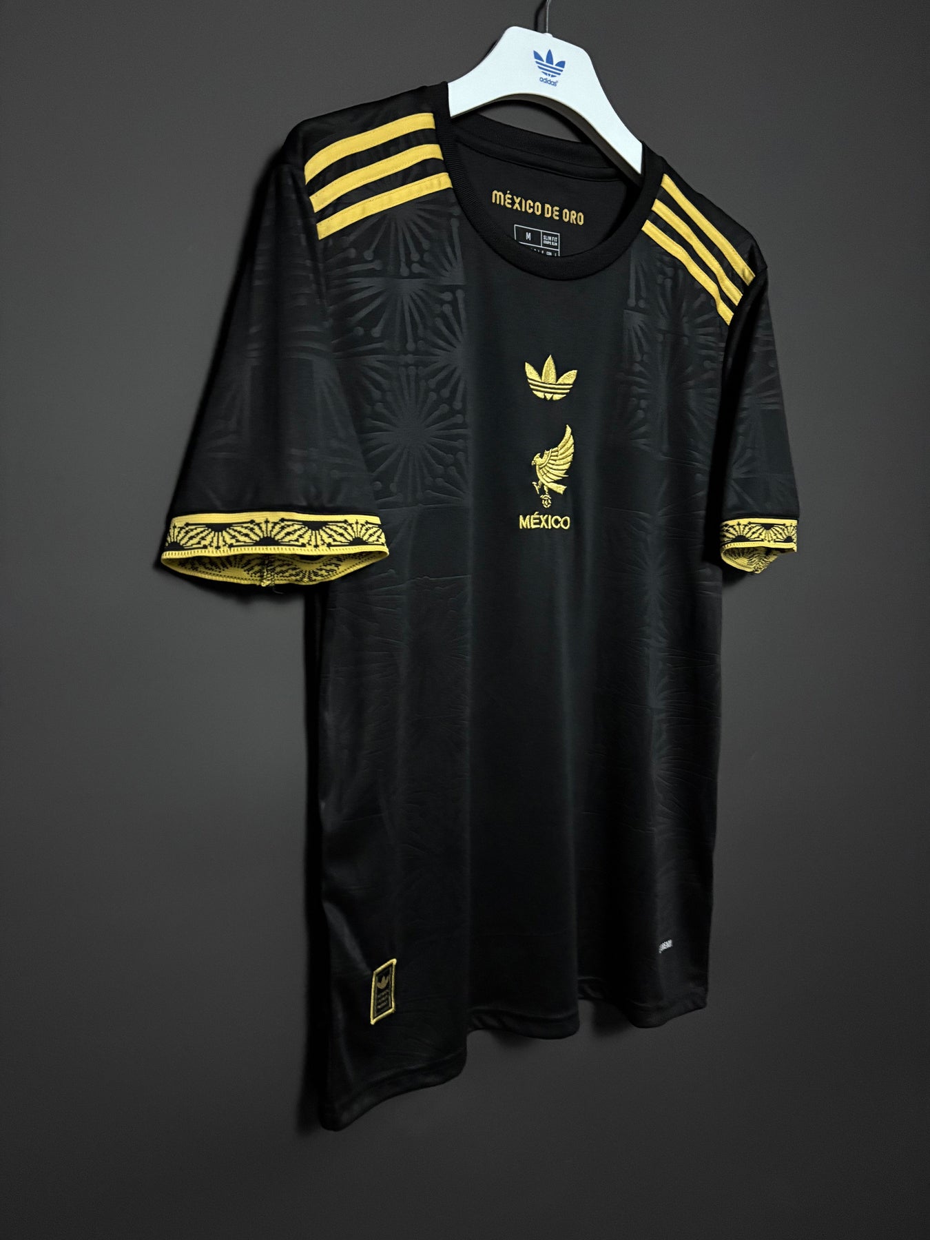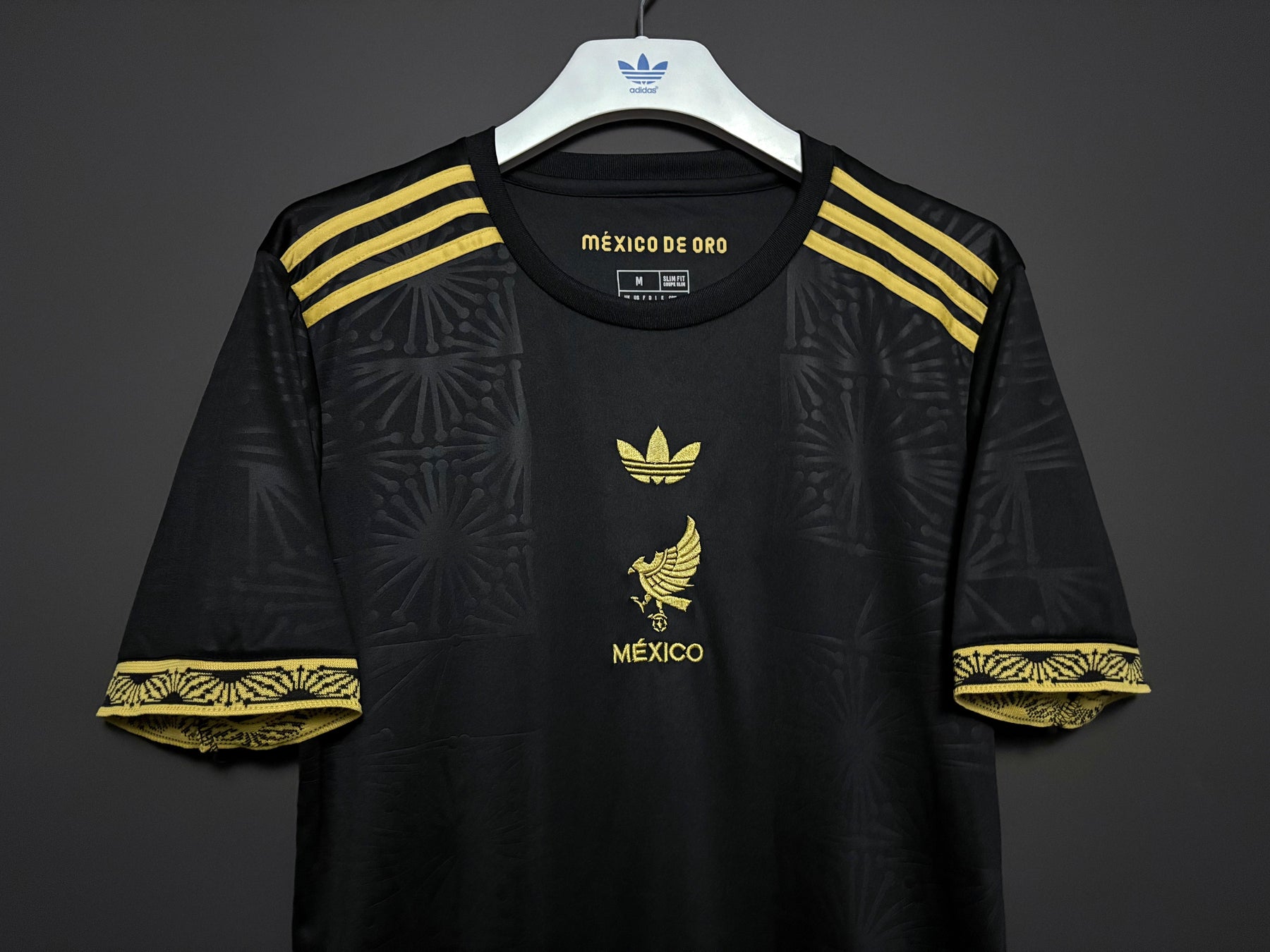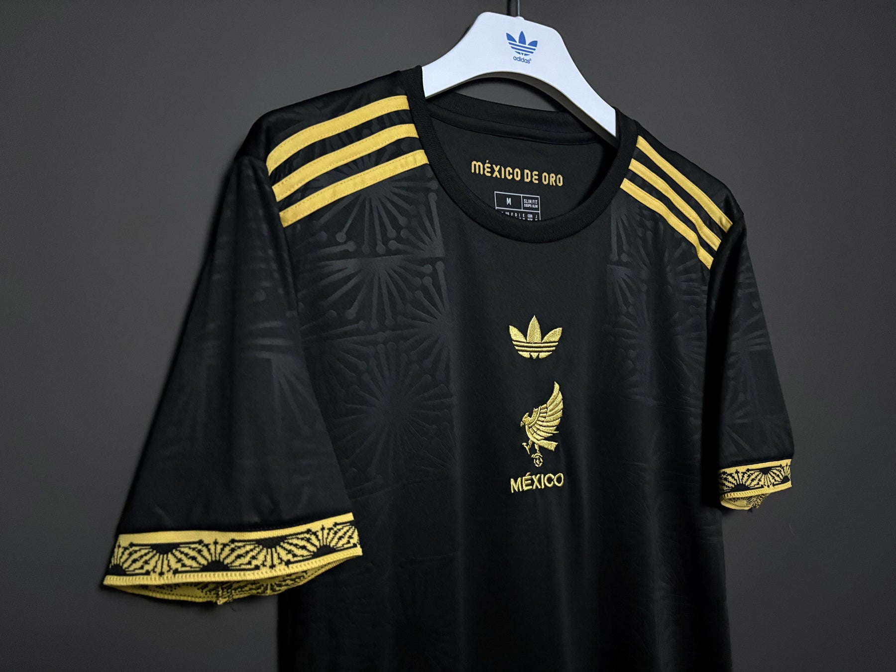 Meksikon erikoiserän vieraspelipaidassa on syvänpunainen pohja, jota täydentävät ylelliset kultaiset yksityiskohdat luoden elegantin ja voimakkaan ilmeen. Kankaan hienovaraiset kuviot sekä olkapäiden kultaiset raidat muodostavat tyylikkään designin, joka on saanut inspiraationsa maan ylpeästä jalkapalloperinteestä. Paita on valmistettu kevyestä ja hengittävästä teknisestä materiaalista, joka takaa maksimaalisen käyttömukavuuden niin kentällä kuin arjessakin.